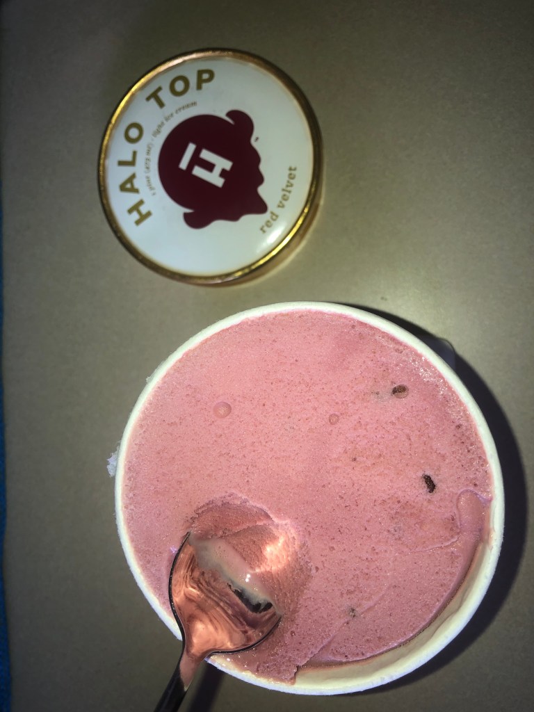 Halo Top does an amazing job keeping the red velvet to a smooth, underwhelming flavor. It also has this taste of malt- which I love malts, but maybe proceed with caution if you’re not a malty person.
